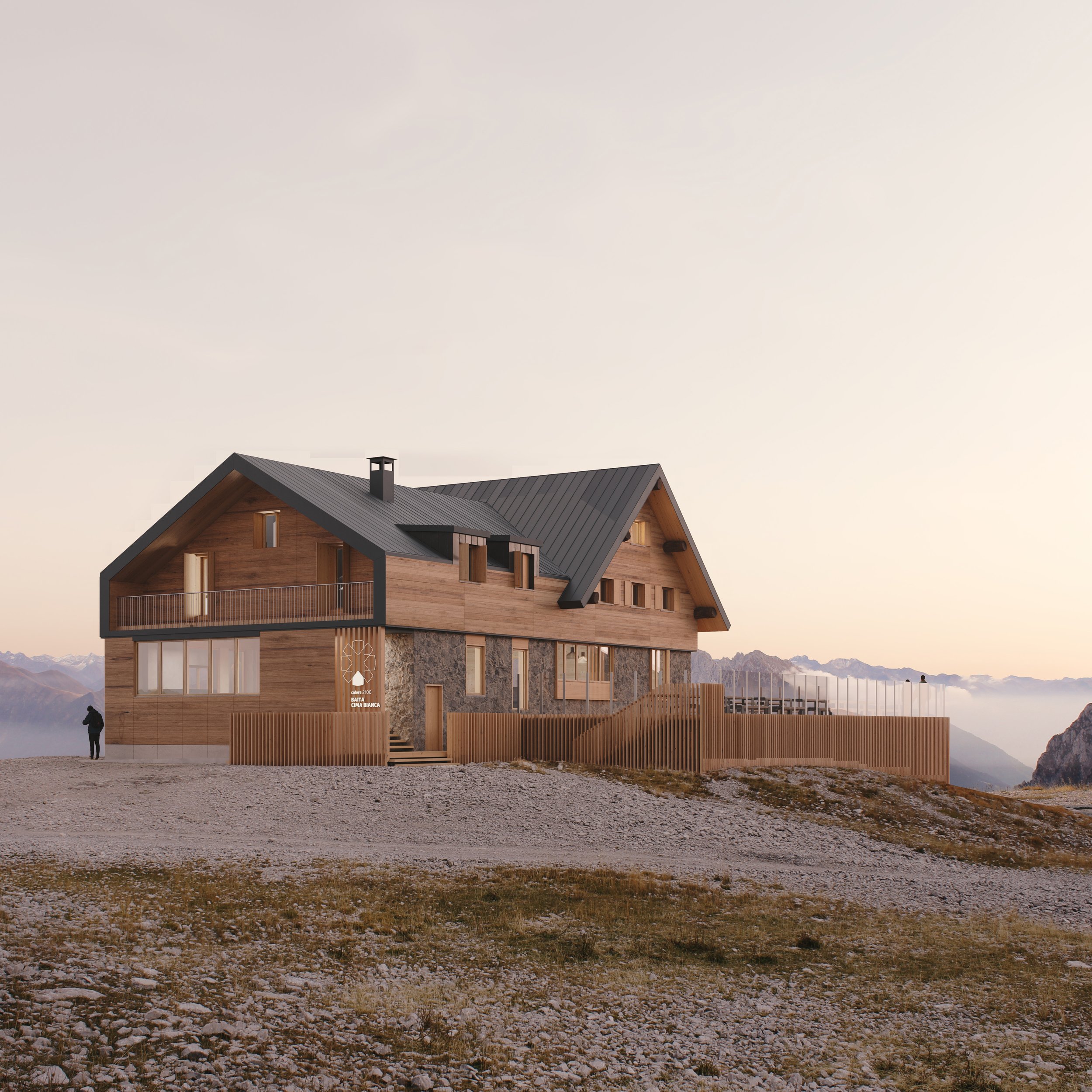 Cima Bianca rappresenta il secondo tassello del sistema. Situato a 2100 metri di altitudine, il progetto prevede la ristrutturazione dell’edificio esistente senza incremento volumetrico.